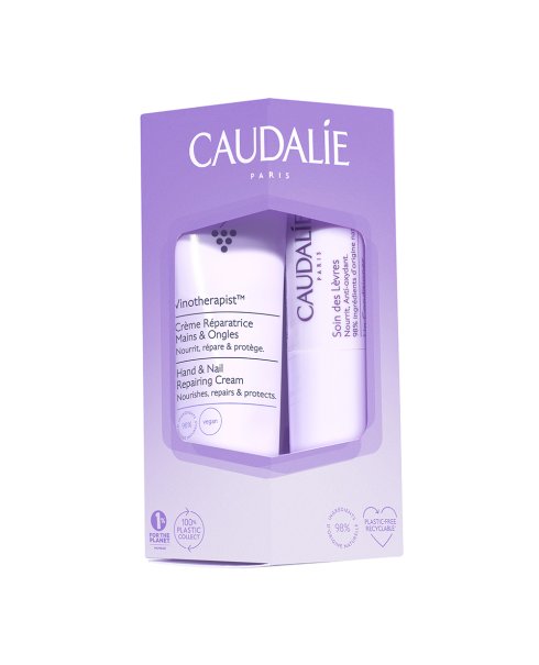 Caudalie Vinotherapist Duo Mani e Labbra è un cofanetto dedicato alla cura completa di mani, unghie e labbra. La Crema Riparatrice Mani e Unghie Vinotherapist nutre e ripara le mani secche senza ungere, proteggendole dalla disidratazione e dagli agenti esterni. Lenisce la sensazione di pelle che tira, lasciando le mani morbide e le cuticole rinforzate.